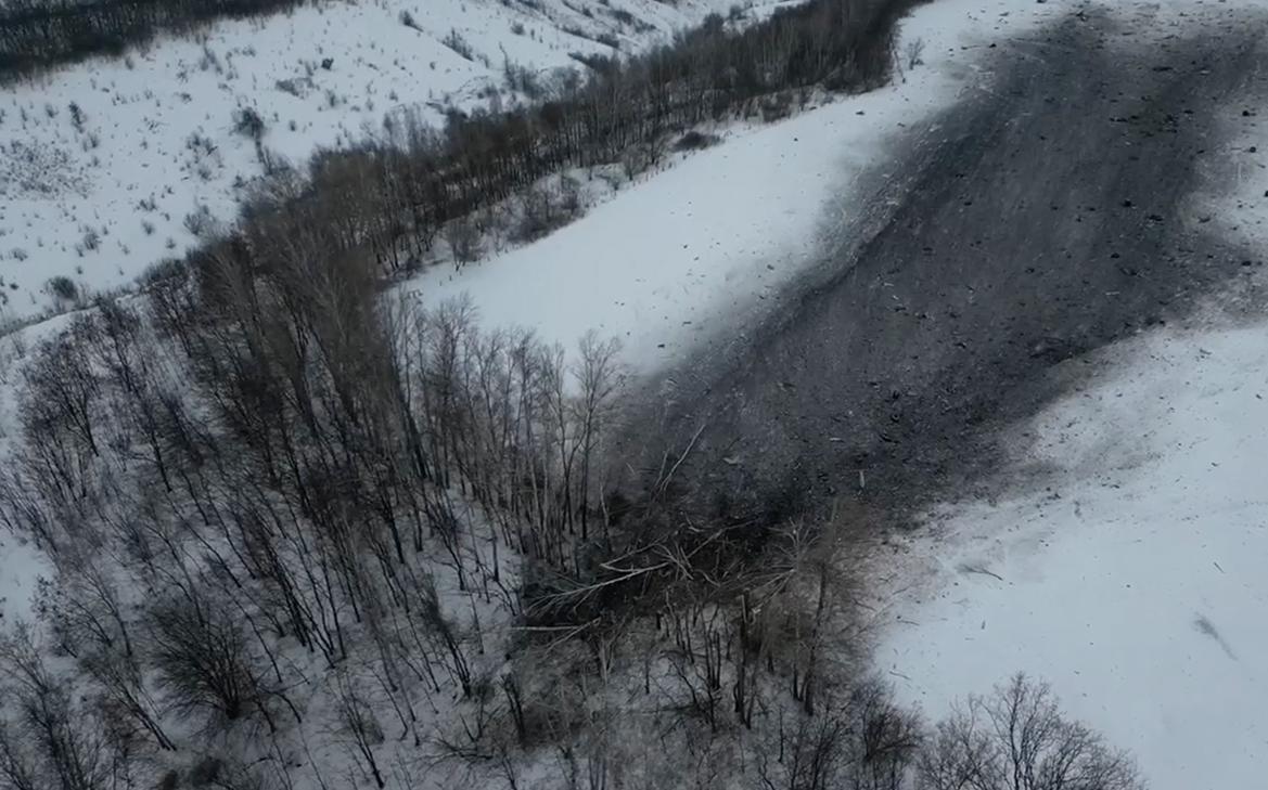 СК опубликовал кадры с места крушения Ил-76 в Белгородской области