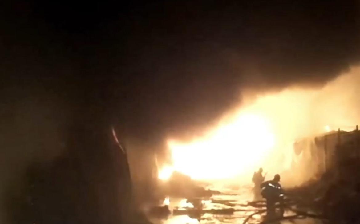 «Огонь охватил 2 500 кв. м помещения для хранения обуви. Тушение осложняет высокая горючая нагрузка», — говорится в сообщении.