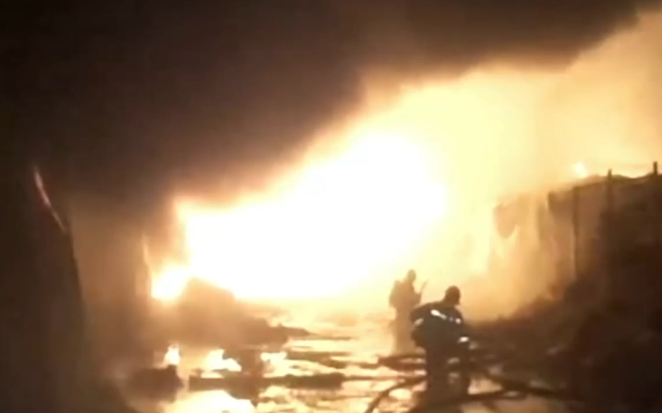 «Огонь охватил 2 500 кв. м помещения для хранения обуви. Тушение осложняет высокая горючая нагрузка», — сообщили в МЧС.