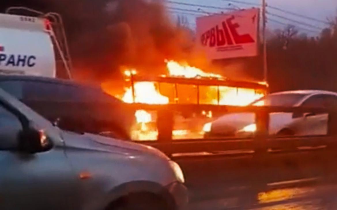 Городской автобус загорелся на Варшавском шоссе в Москве. На видео с места инцидента, опубликованных в соцсетях, видно, что огонь охватил весь автобус. Над ним поднимается черный дым.