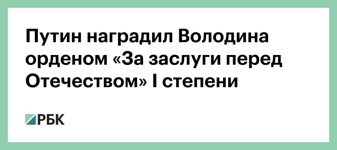 Путин наградил Володина орденом «За заслуги перед Отечеством» I степени