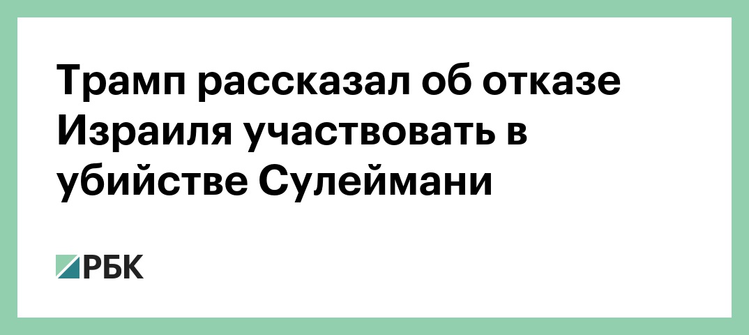«Израиль должен был принять участие в убийстве Сулеймани вместе с нами. За два дня до этого [власти Израиля] сказали нам: «Мы не можем этого сделать». <...> Тогда мы решили сделать это сами», — рассказал Трамп.