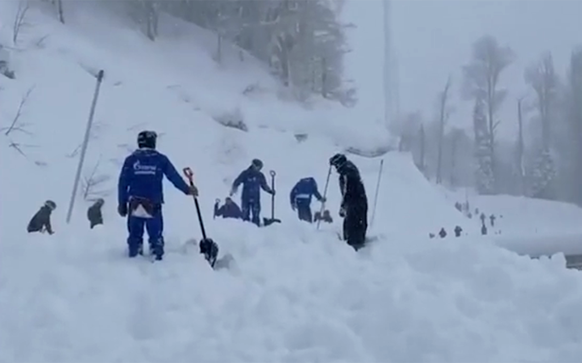 Кадры поиска на курорте в Сочи попавших под лавину людей