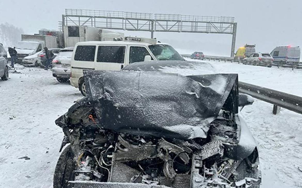 Появились кадры с места аварии 30 машин на трассе «Дон» в Московской области