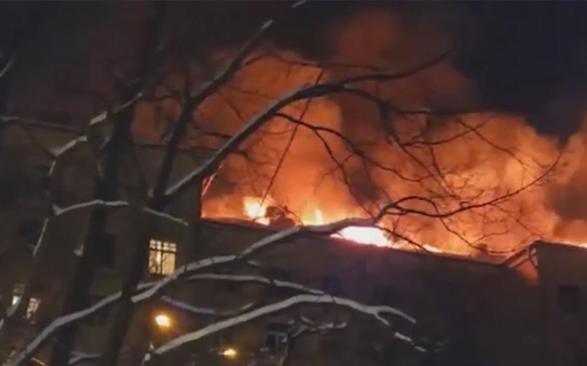 Огонь охватил кровлю шестиэтажного жилого дома возле метро «Аэропорт». Площадь пожара составила 4 тыс. кв. м. К ликвидации возгорания привлекли более 130 специалистов, 41 единицу техники и два вертолета Ка-32. С воздуха сбросили уже 15 т воды, рассказали в МЧС.