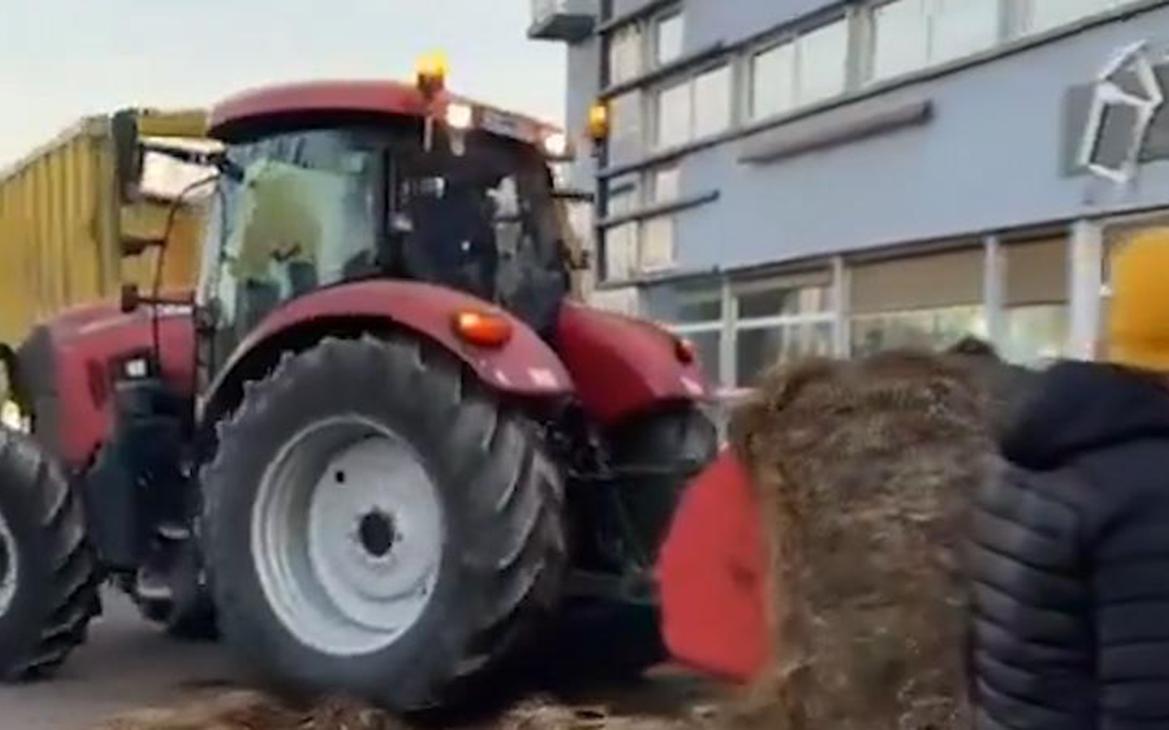 Французские фермеры выгрузили навоз перед банком. Видео