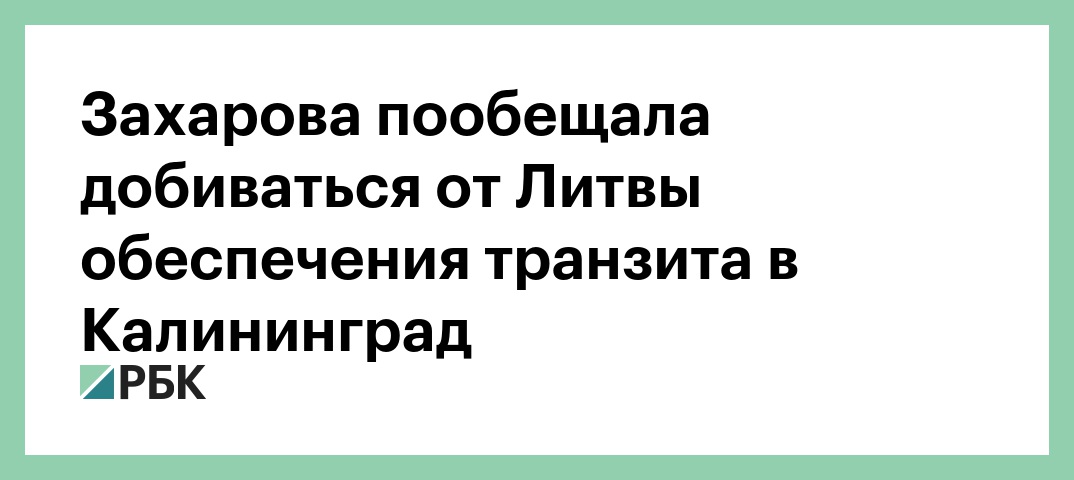 Захарова пообещала, что Москва будет добиваться того, чтобы Вильнюс и Брюссель выполняли «взятые на себя политические и международно-правовые обязательства» по обеспечению бесперебойного калининградского транзита. Речь идет как о пассажирских, так и грузовых поездах, подчеркнула она.