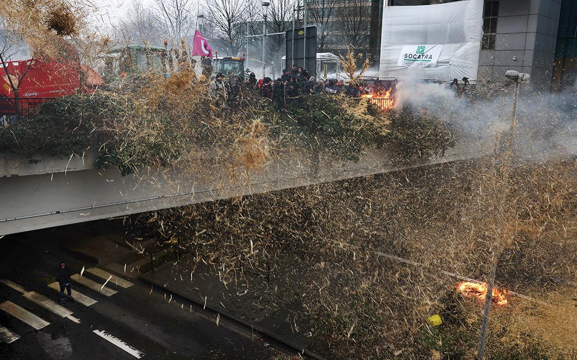 Фермеры на протестах в Брюсселе закидали полицию соломой