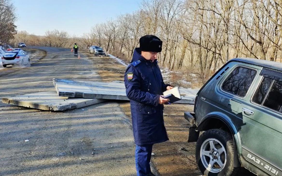 На автодороге Осиновка — Рудная Пристань 27 февраля с фуры упали железобетонные плиты на автомобили, которые ехали по встречной полосе, — Niva, Toyota Alion и Honda Shuttle.