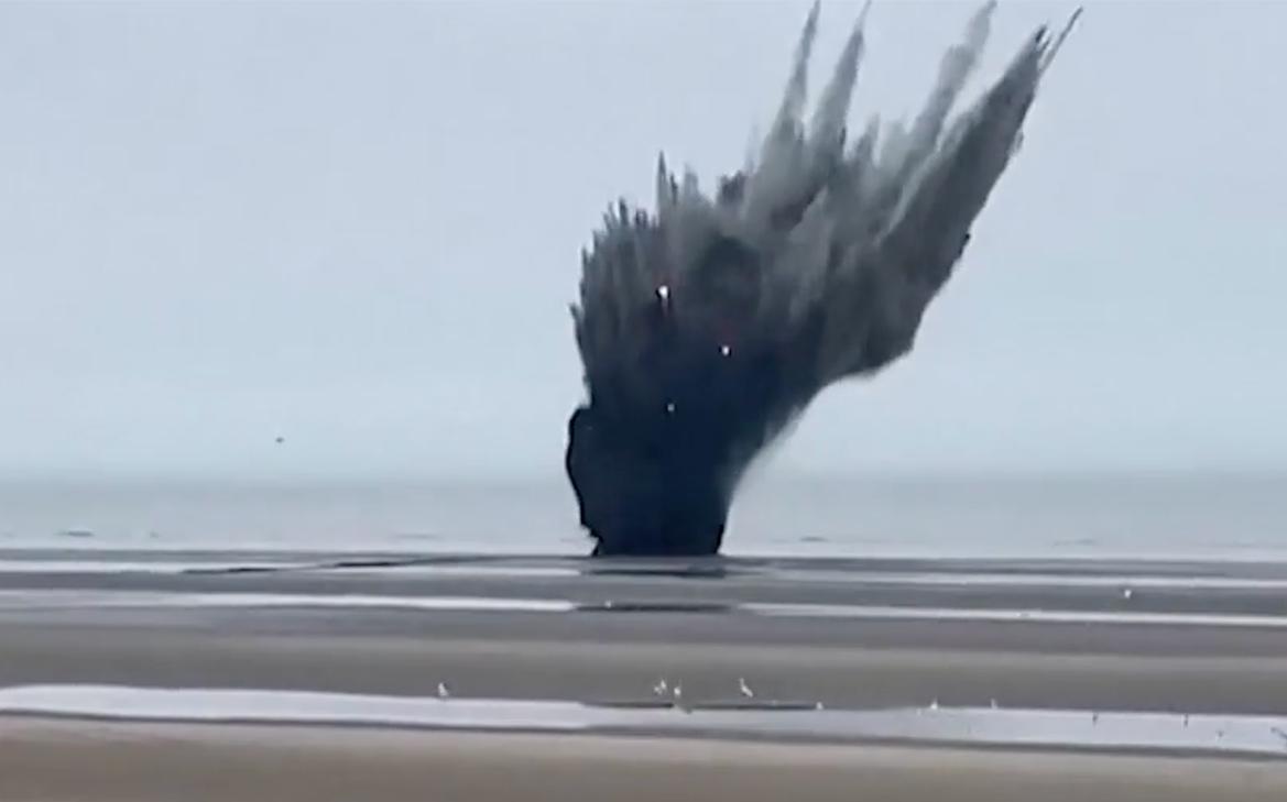 Кадры взрыва бомбы времен Второй мировой войны на пляже в Бельгии