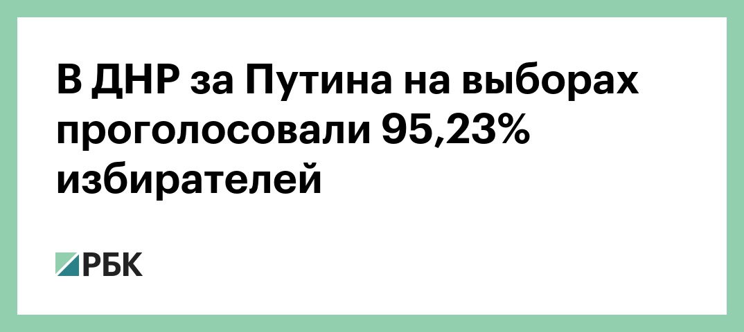 В Донецкой народной республике на выборах президента России по итогам обработки 100% протоколов большинство голосов набрал действующий глава государства Владимир Путин — 95,23%, следует из данных Центризбиркома.