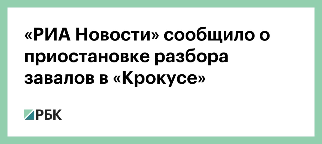 «РИА Новости» сообщило о приостановке разбора завалов в «Крокусе»