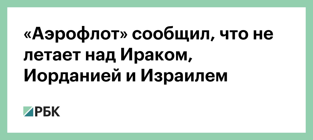 «Аэрофлот» сообщил, что не летает над Ираком, Иорданией и Израилем