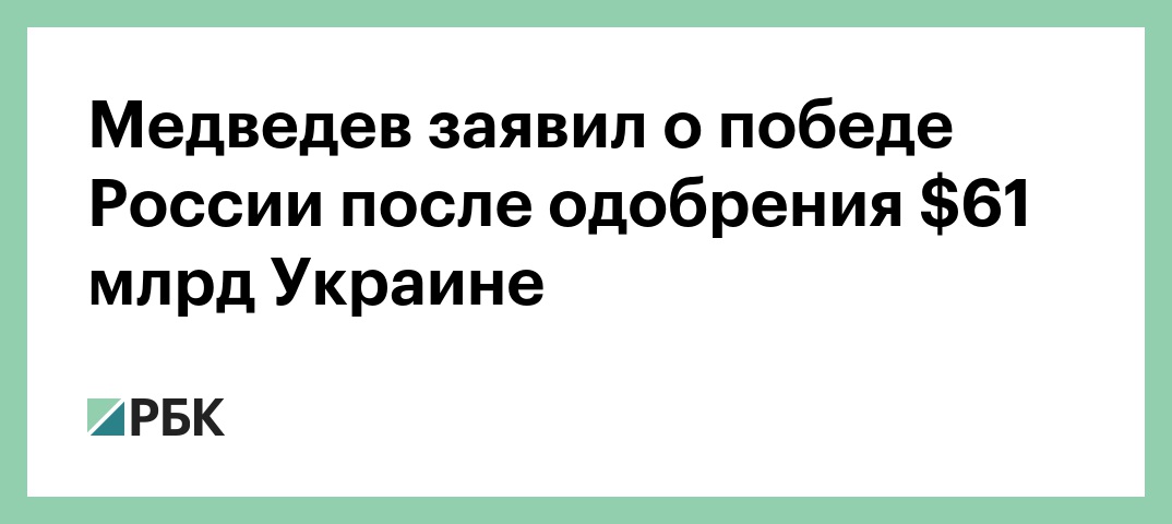 «Мы, конечно, победим, несмотря на 61 млрд кровавых долларов, которые в основном пойдут в глотку их ненасытного ВПК (военно-промышленного комплекса. — РБК)», — написал он в телеграм-канале. Медведев подчеркнул, что в одобрении пакета помощи не было сомнений.