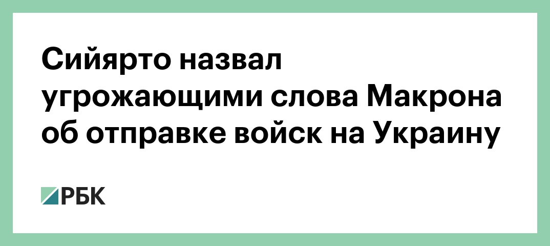 «Если европейские или американские солдаты ступят на украинскую землю, это будет означать, что мы пересекли красную линию внутри НАТО», — сказал он (цитата по Le Figaro). По его словам, это приведет к «прямой конфронтации с Россией» и «третьей мировой войне». Сийярто также призвал «объявить прекращение огня и начать мирные переговоры» вместо «отправки новых вооружений».