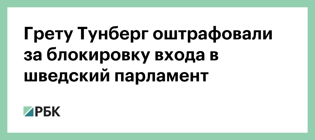 Стокгольмский суд оштрафовал экоактивистку Грету Тунберг за невыполнение приказа полиции после того, как она дважды заблокировала вход в риксдаг (однопалатный парламент) Швеции, сообщает Reuters. Размер штрафа — 6 тыс. крон (около $550).