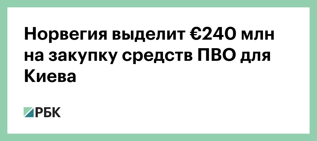 «Норвегия выделит €240 млн на противовоздушную оборону Украины. Сегодня Германия объявила, что поставит Украине еще 100 ракет ПВО Patriot совместно с Данией, Нидерландами и Норвегией. Норвегия внесет в эту инициативу €125 млн», — сказано в сообщении.
