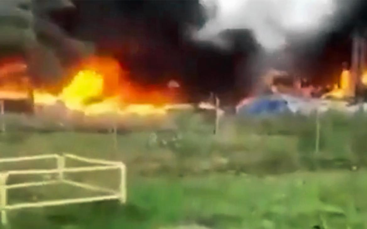 Пожар охватил территорию площадью 500 кв. м. В его тушении участвуют 30 пожарных бригад. Также на место происшествия выехала специализированная химико-спасательная группа.