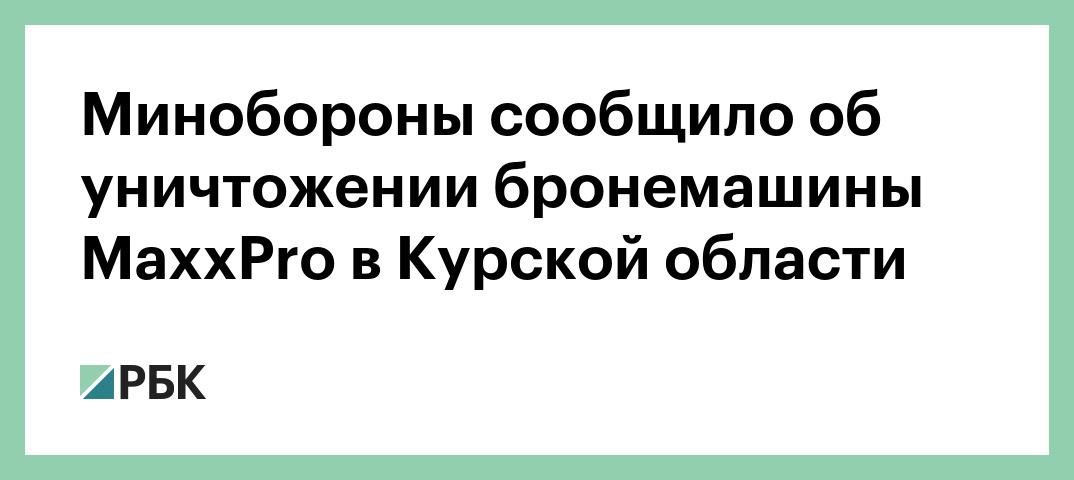 Минобороны сообщило об уничтожении бронемашины MaxxPro в Курской области