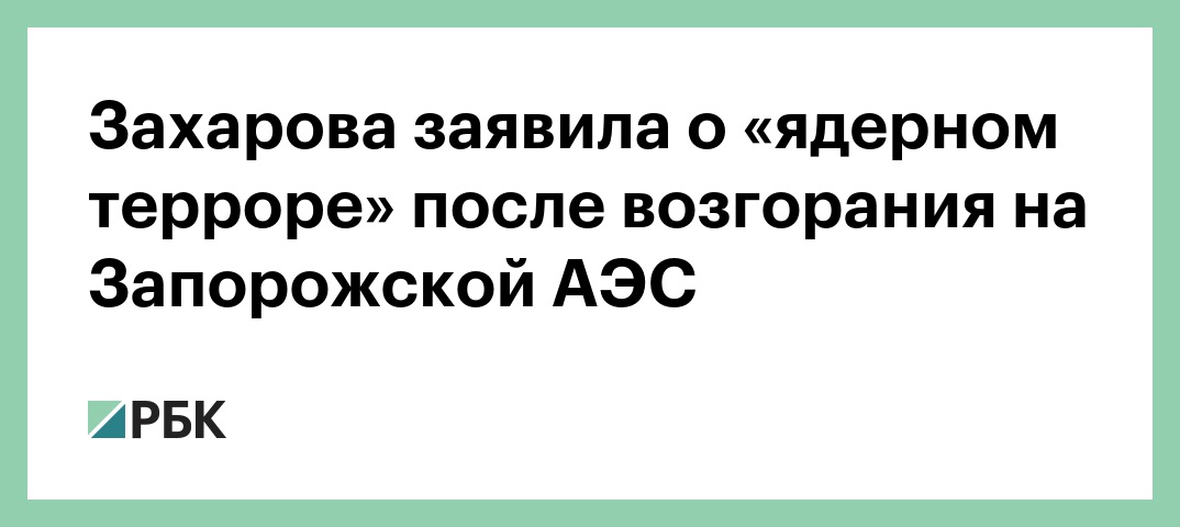 Официальный представитель МИДа Мария Захарова обвинила власти Украины в «ядерном терроре на континенте» после сообщений о возгорании на Запорожской атомной электростанции из-за атаки на Энергодар.