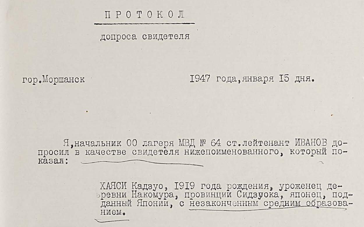 В документах приводятся слова военнопленного — старшего унтер-офицера японской армии Хаяси Кадзуо. Он проходил службу казначеем в части «Исии Сиро», которая вела под Харбином разработку биологического оружия.