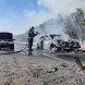 У двух мужчин осколочные ранения грудной клетки, у женщины — минно-взрывная травма, контузия и ранение бедра. Всех пострадавших доставили в больницу. В результате атаки один автомобиль полностью выгорел, второй поврежден.