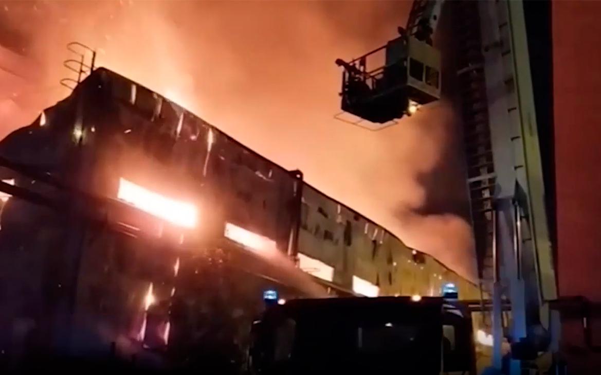 МЧС показало видео с горящего склада матрасов в Подмосковье