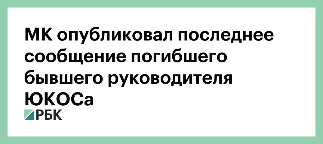 МК опубликовал последнее сообщение погибшего бывшего руководителя ЮКОСа