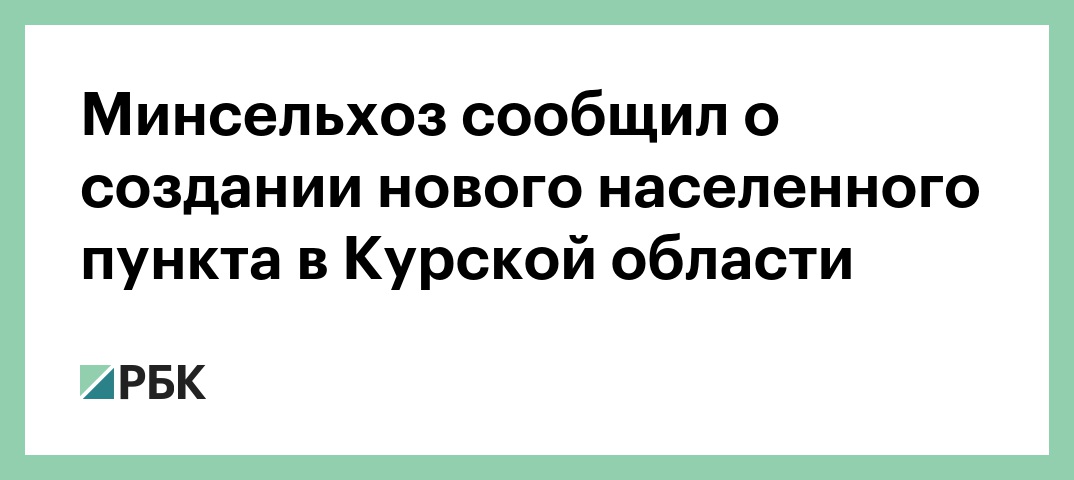 Минсельхоз сообщил о создании нового населенного пункта в Курской области