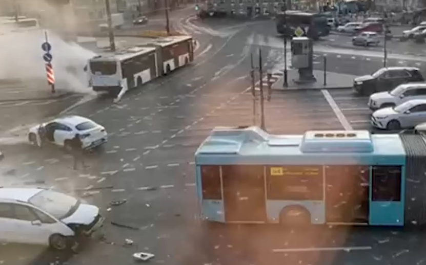 ДТП произошло утром 27 октября на площади Восстания. Водитель проехал на красный сигнал светофора, врезался в другой автобус и несколько автомобилей. В результате аварии за медицинской помощью обратились десять человек, двум женщинам в возрасте 50 и 57 лет потребовалась госпитализация, отметили в МВД.