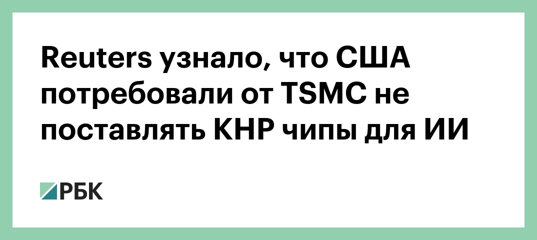 Reuters узнало, что США потребовали от TSMC не поставлять КНР чипы для ИИ