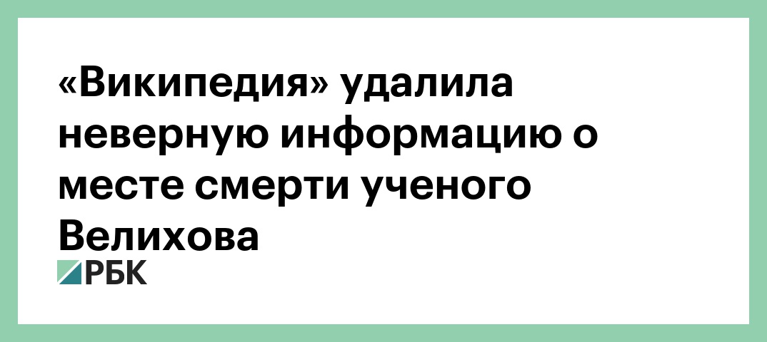 Ранее Роскомнадзор (РКН) направил требование удалить недостоверную информацию. «Википедия» в очередной раз преднамеренно распространяет недостоверную информацию, вводя в заблуждение пользователей Сети. На этот раз — о месте смерти российского академика Е.П. Велихова, умершего <…> в Москве», — сообщили ТАСС в РКН.