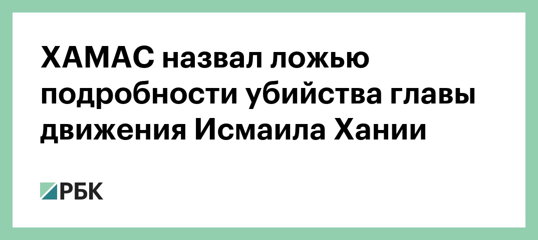 Палестинская исламистская группировка ХАМАС назвала ложью сообщения израильских СМИ о том, как был убит лидер движения Исмаил Хания, сообщает пресс-служба движения в телеграм-канале.