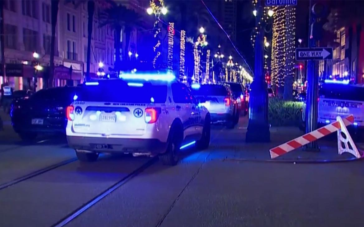 На месте наезда машины на толпу людей в Новом Орлеане дежурят полицейские и машины скорой помощи, следует из кадров, которые сняли очевидцы. Место происшествия оцеплено.