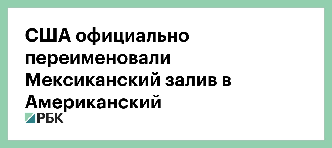 Президент США Дональд Трамп распорядился переименовать Мексиканский залив в Американский, а пик Денали на Аляске — в Мак-Кинли. Об этом сообщило Министерство внутренних дел Соединенных Штатов.