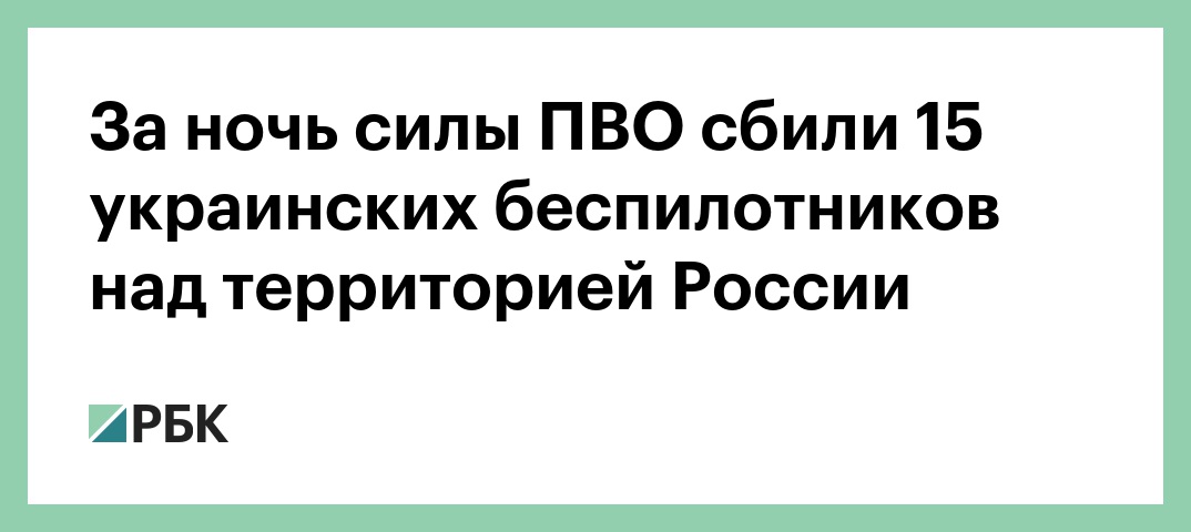 За ночь силы ПВО сбили 15 украинских беспилотников над территорией России