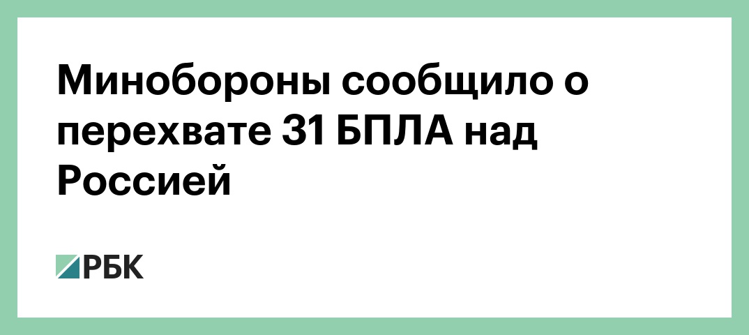 Минобороны сообщило о перехвате 31 БПЛА над Россией