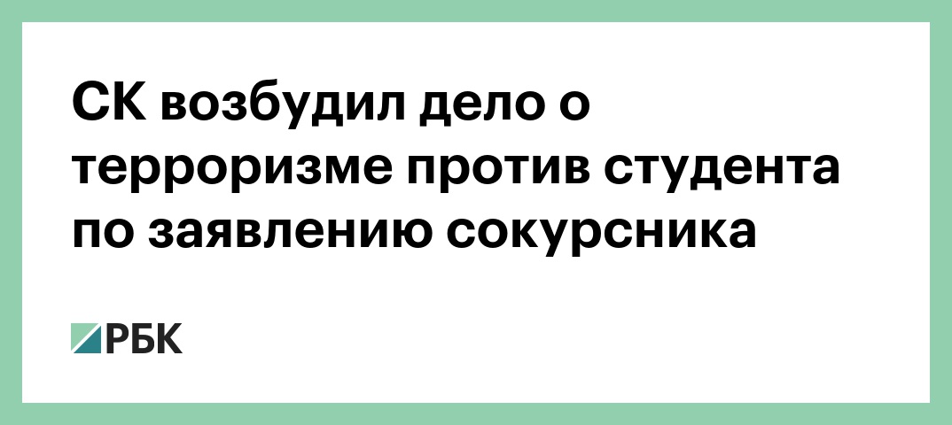 СК возбудил дело о терроризме против студента по заявлению сокурсника