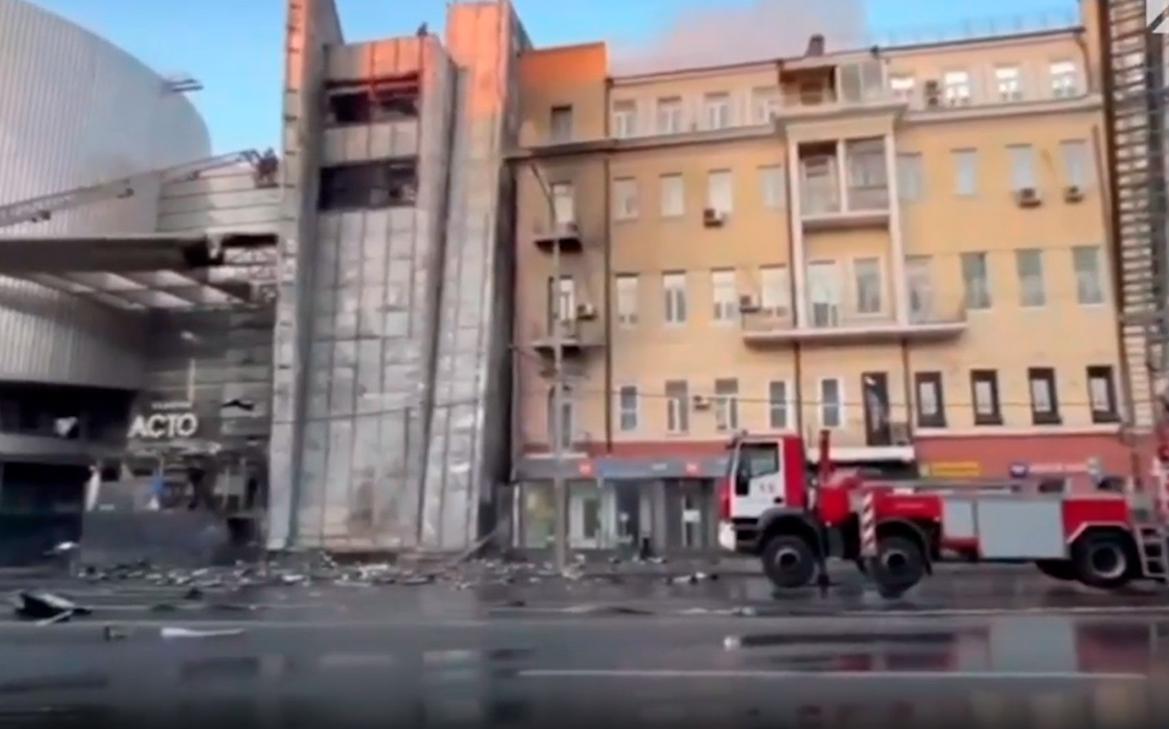 Огонь с горящего ТЦ в Ростове-на-Дону перекинулся на соседний дом