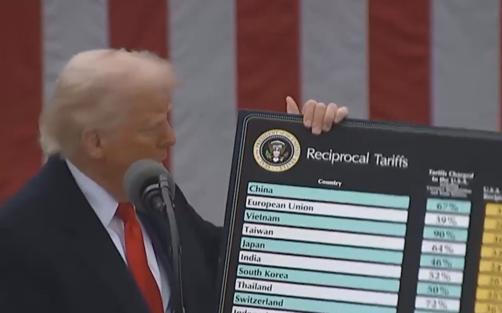 В ходе выступления американский президент представил публике таблицу с тарифами пошлин, которые США вводят в отношении государств. Всего в список вошли 260 стран и территорий.