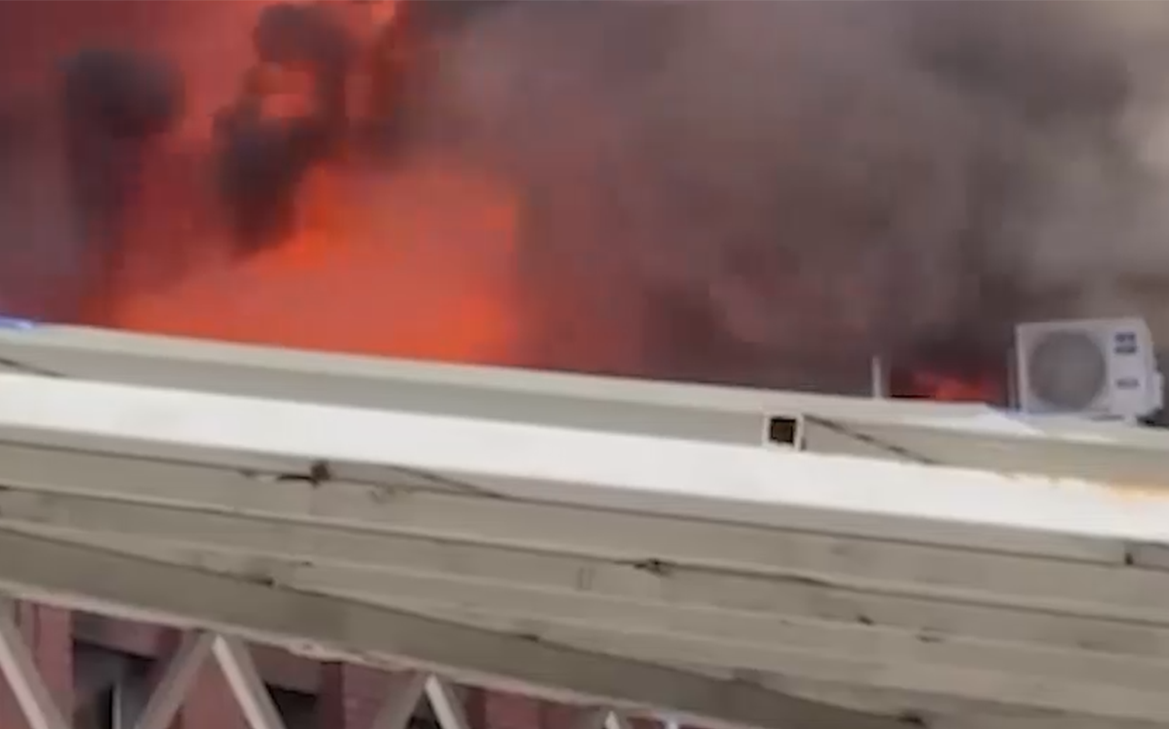 По данным ведомства, загорелась кровля здания. Площадь возгорания составила 600 кв. м.