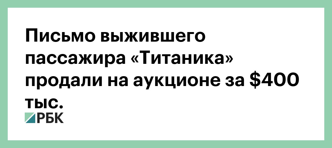 Письмо выжившего на «Титанике» пассажира продали на аукционе почти за £300 тыс. (почти $400 тыс.), сообщает газета The Guardian.