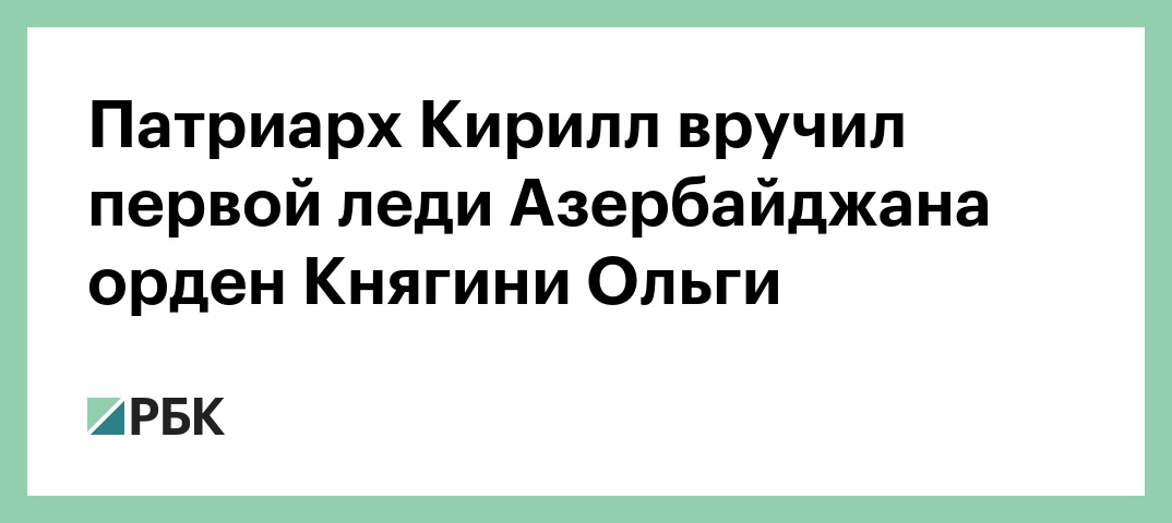Патриарх Московский и всея Руси Кирилл вручил супруге президента Азербайджана Ильхама Алиева Мехрибан орден Святой Равноапостольной Княгини Ольги I степени, сообщает пресс-служба азербайджанского лидера.