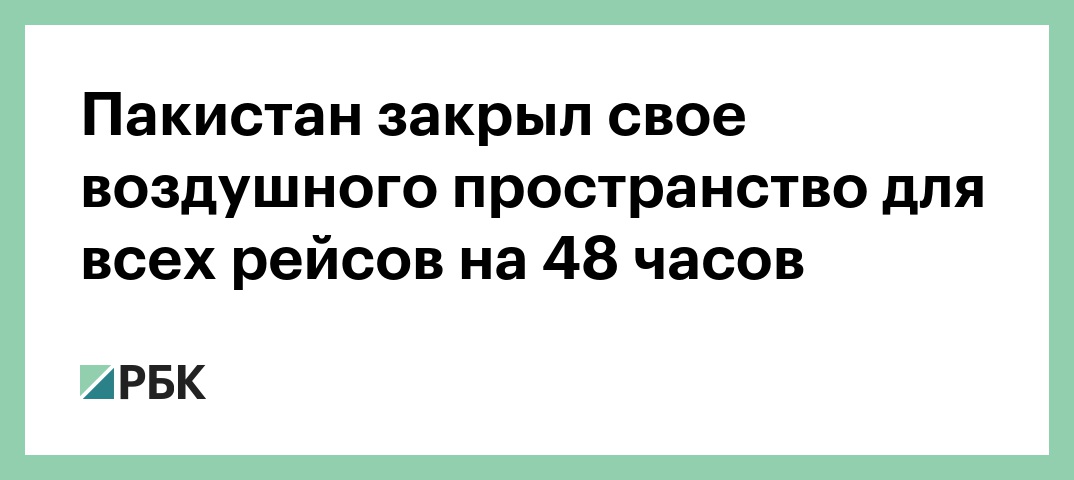 Пакистан временно закрыл свое воздушное пространство на 48 часов для всех внутренних и международных рейсов, сообщает местный телеканал Samaa TV со ссылкой на источники в авиации. Об этом также пишет пакистанская газета Daily Ausaf.