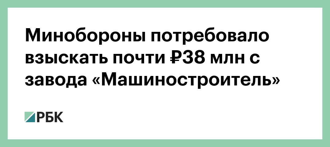 Минобороны потребовало взыскать почти ₽38 млн с завода «Машиностроитель»