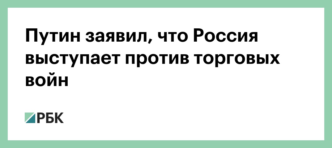 По словам Путина, происходящие сейчас торговые войны, наравне с вооруженными конфликтами между странами, создают сложности для мировой торговли. «Прогнозы, которые говорят о том, что мировая торговля будет замедляться, имеют под собой определенные основания», — добавил он.