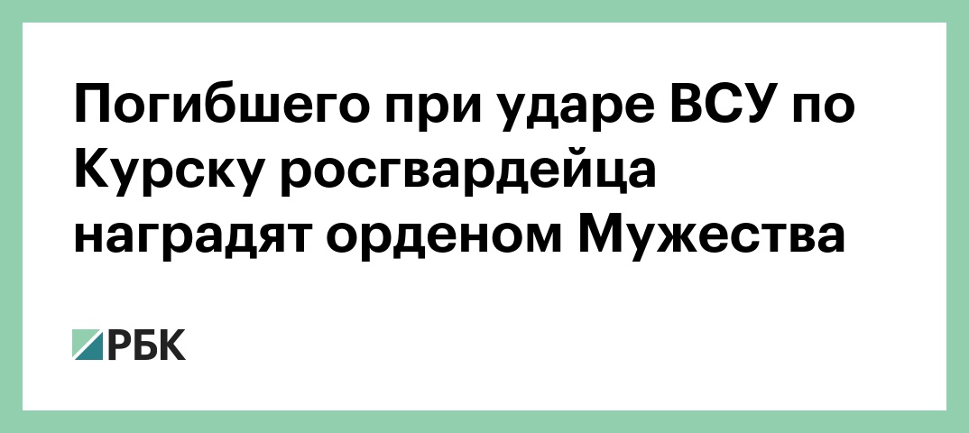 Погибшего при ударе ВСУ по Курску росгвардейца наградят орденом Мужества