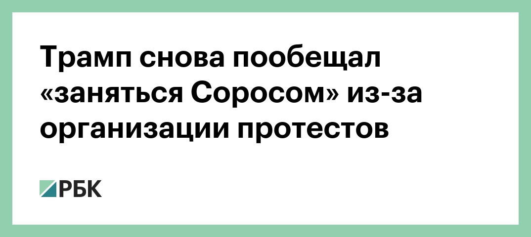 Протестующие «получают деньги за свою профессию от Сороса и других людей. И мы займемся Соросом, потому что я считаю, что это дело RICO (Racketeer Influenced and Corrupt Organizations Act — о коррумпированных и находящихся под влиянием организованной преступности организациях. —РБК) против него и других людей. Потому что это больше, чем просто протесты. Это настоящие волнения», — заявил Трамп.