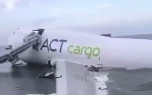В Гонконге грузовой Boeing выкатился с посадочной полосы в море