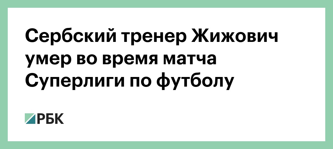 Тренер футбольного клуба «Раднички» из города Крагуевац 45-летний Младен Жижович скончался во время матча 14-го тура чемпионата Сербии против клуба «Младост» из Лучани, сообщает сербская газета novosti.rs.